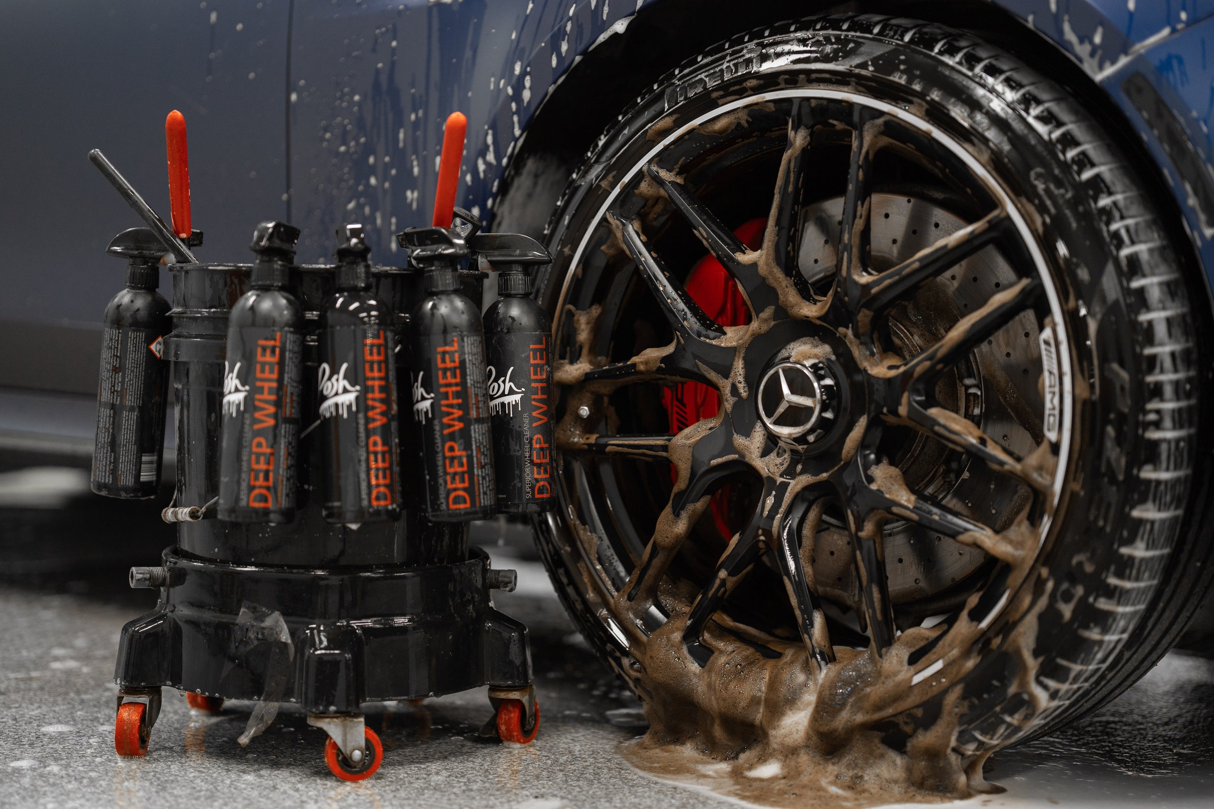 Deep Wheel is a non-acid wheel cleaner that safely and effectively eliminates brake dust, dirt, and debris from painted, alloy, anodized, chrome, aluminum, and stainless steel wheels.
