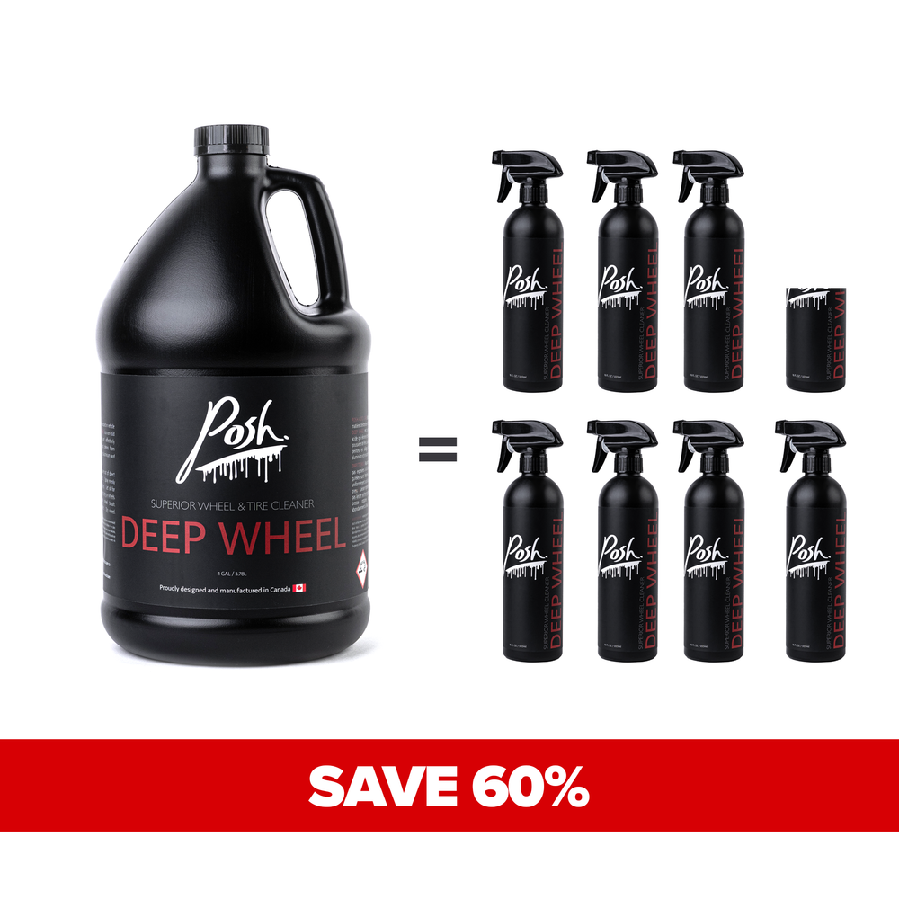 Deep Wheel is a non-acid wheel cleaner that safely and effectively eliminates brake dust, dirt, and debris from painted, alloy, anodized, chrome, aluminum, and stainless steel wheels.