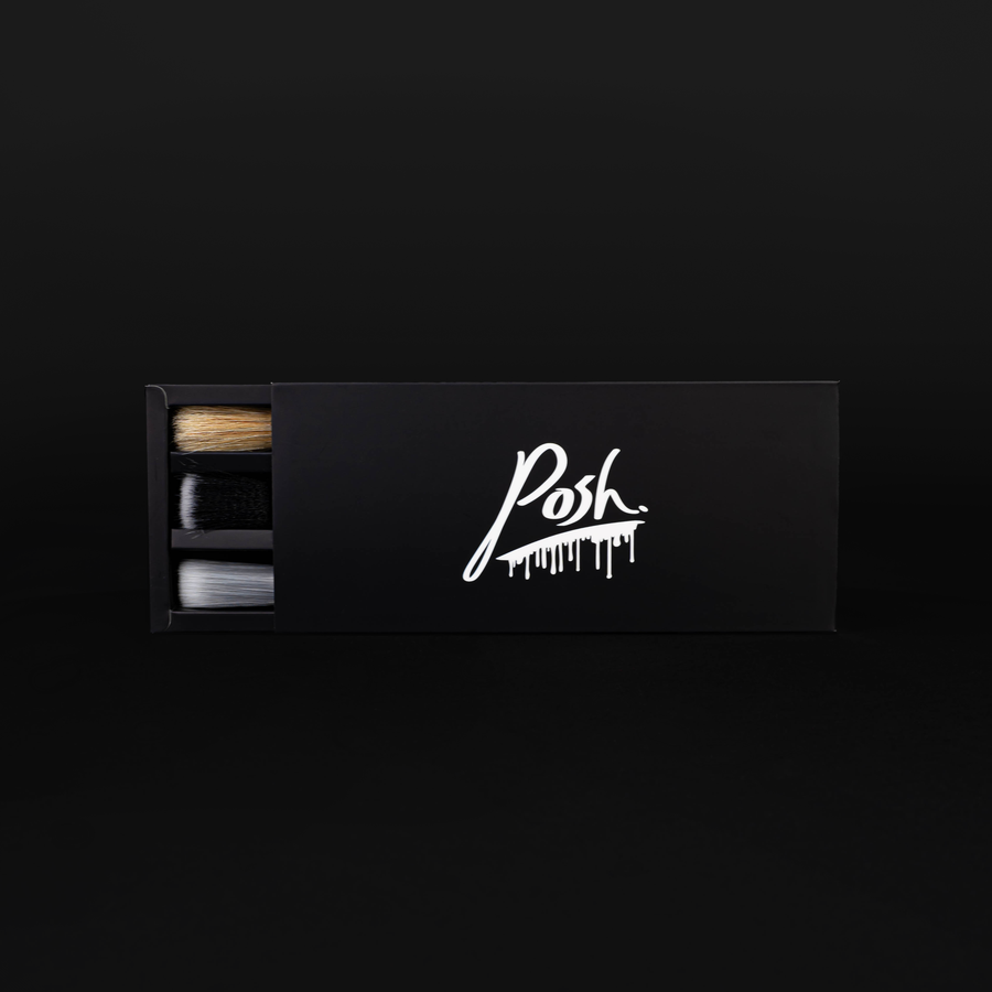 The Posh Interior Brushes Kit Includes 1 x Boar hair bristle brush, 1 x Crevice brush, and 1x Ultra-soft bristle brush, and are designed to safely and effectively clean all interior surfaces.