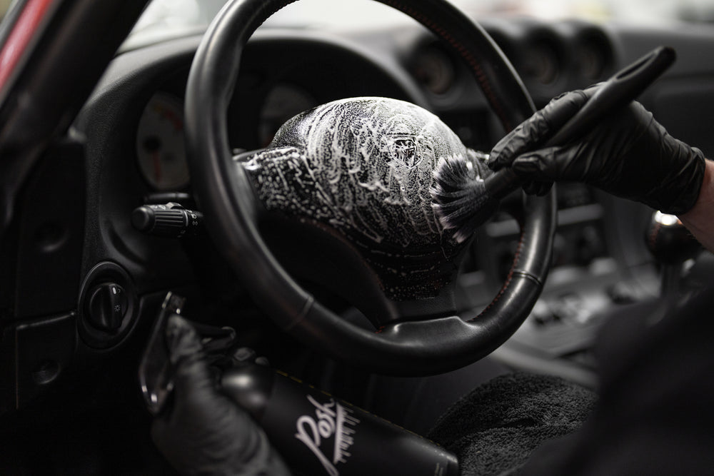 Interior Care was designed to froth into a consistent foam when detailing, providing superior cleaning results by agitating and picking up dirt, dust, or debris. It works excellent when combined with our Interior Brushes and Microfibers.